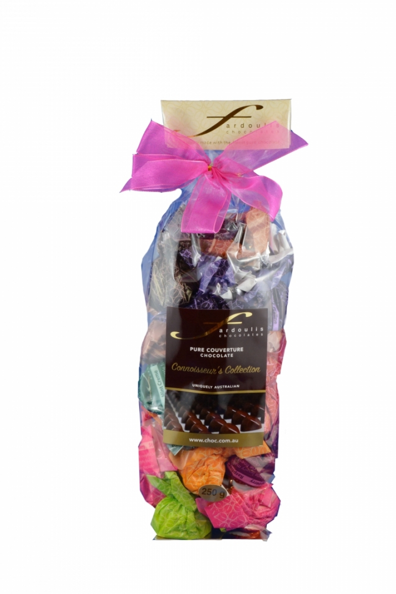 The Connoisseur Collection makes a delightful gift for those who enjoy an assortment of Pure Couverture Chocolate with aromatic truffle and ganache fillings. Choose from an assortment of sweet strawberry mousse, delicate raspberry truffle, coconut cream, smooth hazelnut praline, caramel mousse, mocca coffee, passionfruit crème, crunchy wafer praline and much more.