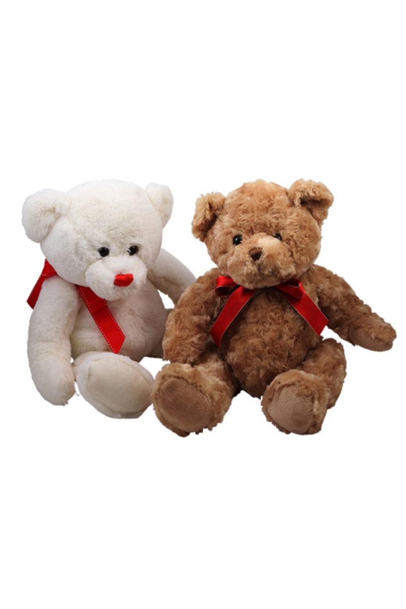 Natural or White plush bear with a satin red bow