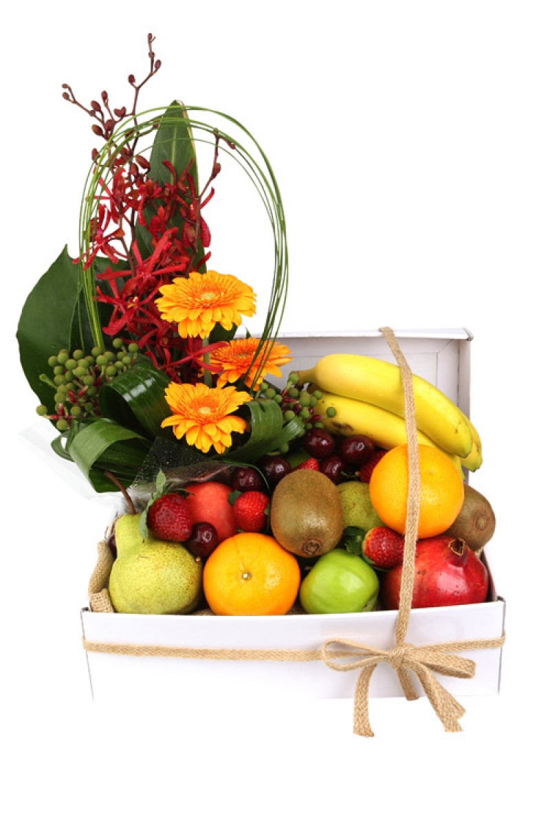 This gift box filled with freshly picked seasonal fruits with a spray of flowers is specifically made to have your loved ones feel they are extra special.