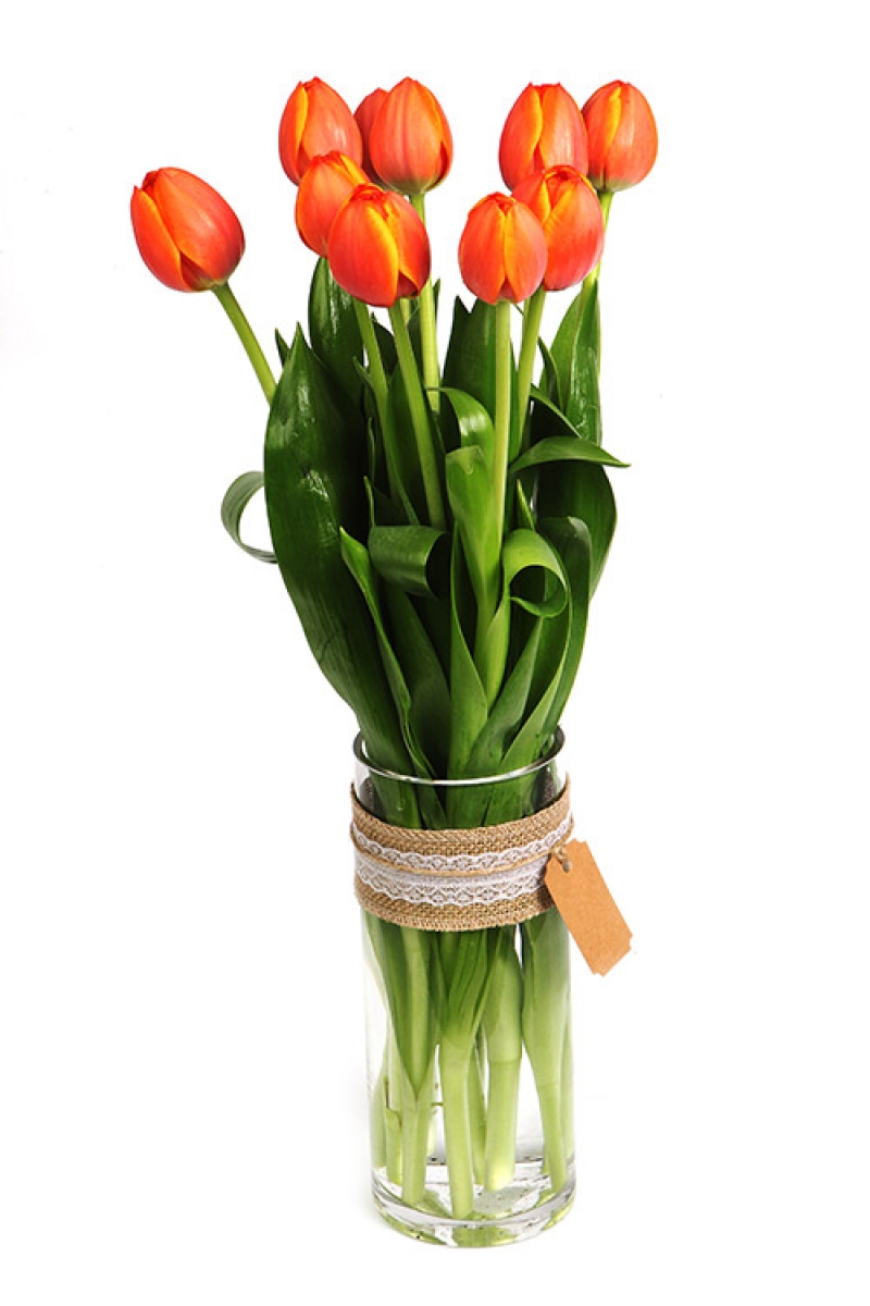 A stunning floral arrangement that is perfect for any occasion. Whether it's an anniversary or a birthday, say it with love. These simple but stunning tulips in an elongated glass vase will surely suprise that special someone. Adorned with lush green accents, it is sure to be the perfect gift!