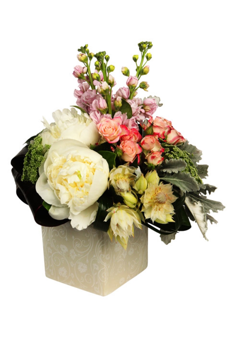 Sweet scented blooms in pink tones arranged in a ceramic pot