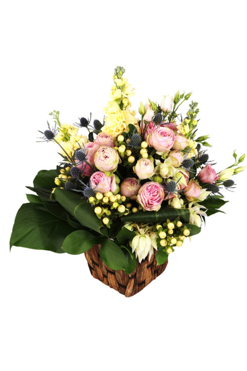 This elegant woven basket filled with a combination of pastel blooms will have your loved ones feel in harmony with peace and comfort.